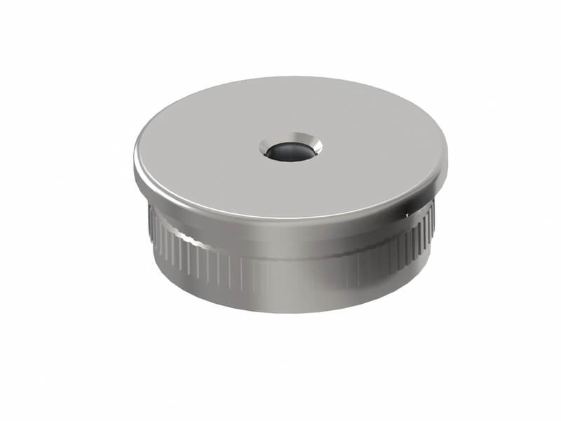 Edelstahl-Endkappe in flacher Ausführung, mit M8-Bohrung für Rohr Ø 42,4 mm