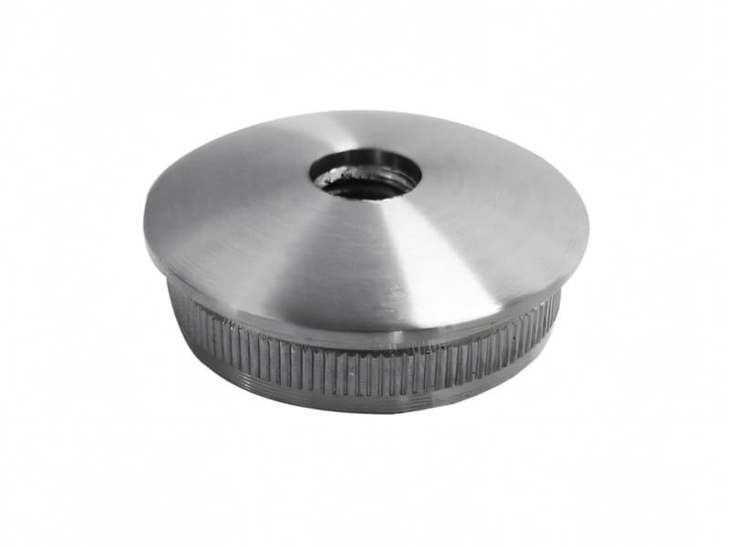 Edelstahl-Endkappe in pombierter Ausführung, mit M8-Bohrung für Rohr Ø 42,4 mm