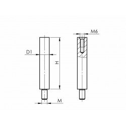 Verbindungsstift aus Edelstahl V2A, mit Gewinde M8 unten und M6 oben, zur Befestigung von passenden Halteplatten.