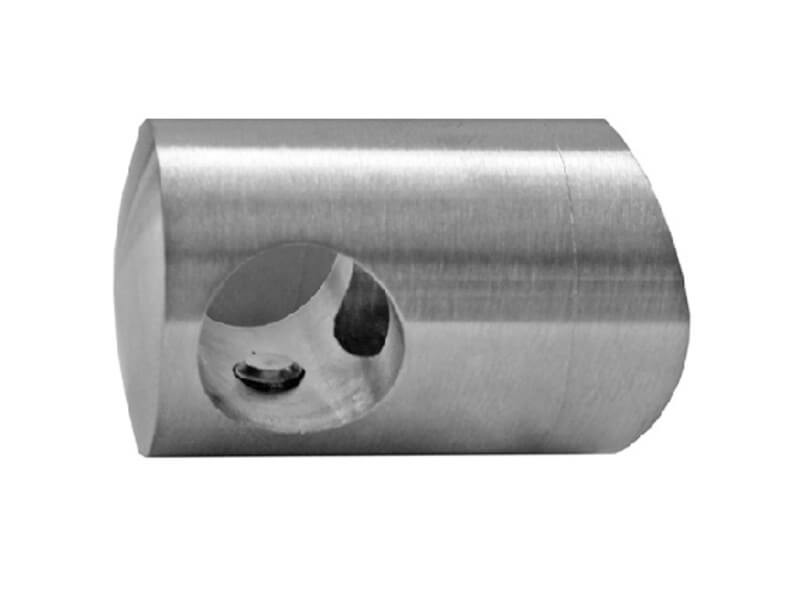 Einfache Abschluss-Traversenhalter mit Sacklochbohrung, zur Befestigung der 12 mm Füllstäbe an unterschiedlichen Rundpfosten oder flachen Ebenen.