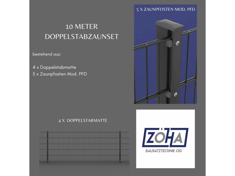 Einfaches Zaunset für einen Doppelstabmattenzaun mit unserem Standartpfosten Mod. D mit Abdeckleiste für Doppelstabmattenzäune mit 8/6/8 oder 6/5/6 mm.