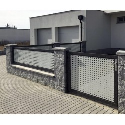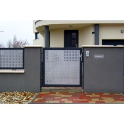 Auch dieser Zaun ist in verschiedenen Variationen erhältlich, wobei hier stets ein Lochblech mit Quadrat- (20 x 20 mm, oder 10 x 10 mm in einem Abstand von 30 bzw. 20 mm), oder Rundlöchern (Ø 8 mm) im Vordergrund steht.
